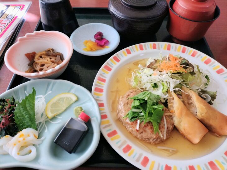 おはようございます☀️ 本日の日替わり定食は…… 🍴グリルハンバーグ(キノコ餡かけ)春巻き 🍴イカ黄金和え です。 サブメニューが変更になってます。 皆さまのご来店をお待ちしております🤗