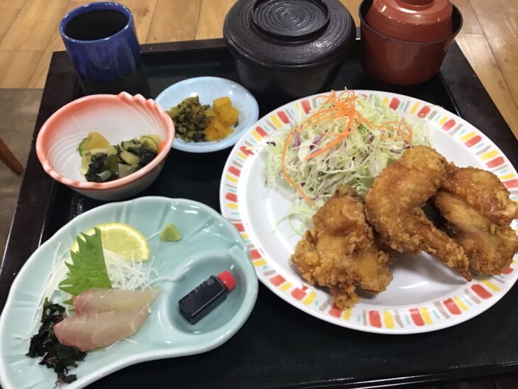 おはようございます☀️ 本日の日替り定食は 骨付き唐揚げ ヒラスのお刺身です。 本日イカ入荷してます🦑 皆様のご来店心よりお待ちしております👩🍳 -