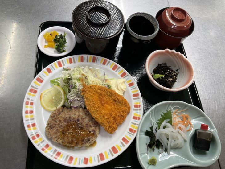 おはようございます☀ 本日の日替わり定食です! ・ハンバーグ&アジフライ ・イカ刺身 皆様のお越しを心よりお待ち致しております♪ -