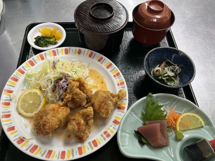 おはようございます。 本日の日替わり定食です。 ・ピリ辛唐揚げ ・マグロ刺身 皆様のお越しをお待ちしております。 -