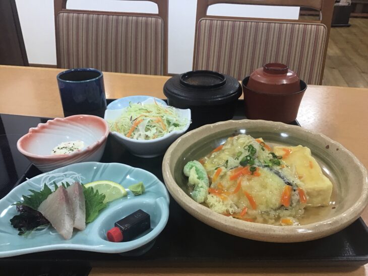 おはようございます☀️ 本日の日替り定食は 揚げ出し豆腐のあんかけ ヒラス刺しです! ご飯のおかわりは無料です☆ お客様のご来店心よりお待ちしております🥰 -