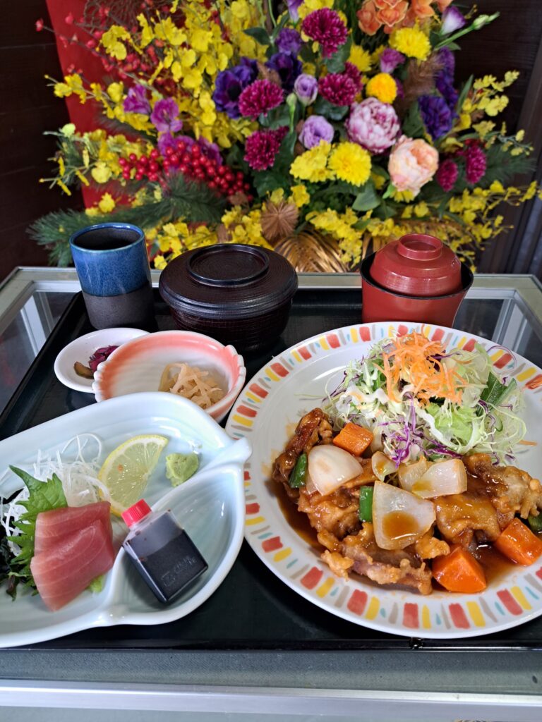 メイン:黒酢酢豚 刺身:マグロの刺身 他5品です ご飯おかわり無料です 本日もご来店お待ちしておりま […]