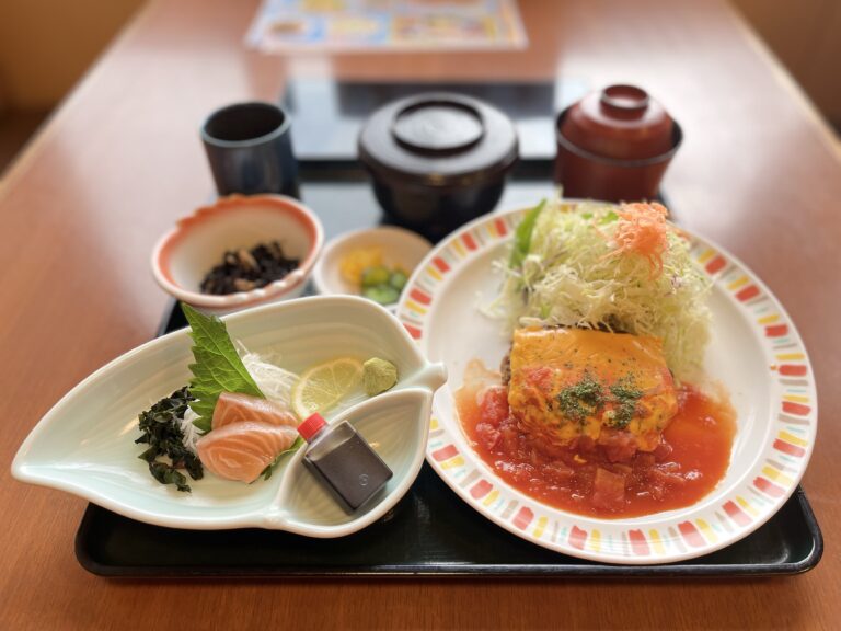 メイン:チーズハンバーグ サブ:サーモン刺身 他4名付き ご飯おかわり自由です。 今日は天気が悪いで […] -