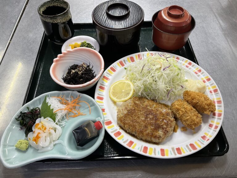 本日の日替わり定食は メイン ハンバーグとカキフライ サブ イカの刺身 です。 本日も皆様のお越し […]
