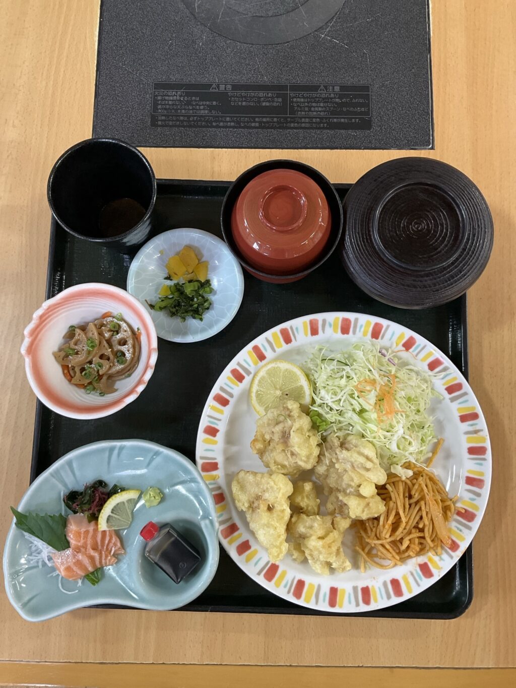 中間店日替わり定食 投稿日 2025年10月27日 著者 さんぞくや 中間店 カテゴリー 日替りランチ おはようございます♪♪ 今日はいい天気ですね☆ 今日の日替わり定食は ☆鶏天 ☆パスタ ☆サーモン刺身 となっております。 明日の日替わり定食は 豚天とヒラス刺身です。 皆様のご来店心よりお待ちしております٩( ᐛ )و この記事を書いた人 さんぞくや 中間店 福岡県中間市にあるさんぞくや中間店です。 定食やお刺身・寿司・鍋料理・唐揚などの単品メニューも豊富にご用意させていただいています。 記事一覧