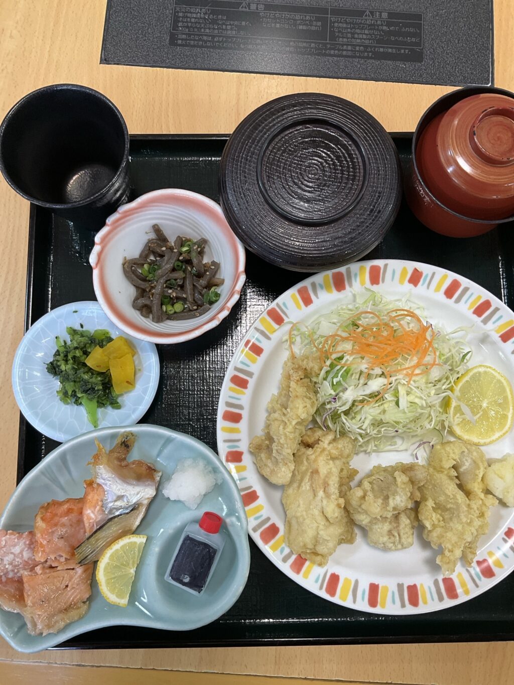 鶏の唐揚げ玉子とじとサバの塩焼きです