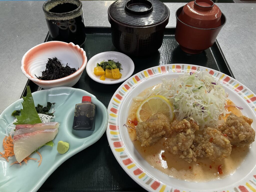 本日の日替わり定食 黒崎店です。 投稿日 2025年12月25日 著者 さんぞくや 黒崎店 カテゴリー 日替りランチ おはようございます。本日の日替わり定食は メイン 唐揚げのピリ辛ソース和え サブ ヒラスの刺身 です。 ご来店の際はお足元が悪いので お気をつけてお越しください。 この記事を書いた人 さんぞくや 黒崎店 さんぞくや黒崎店 福岡県北九州市八幡西区黒崎1丁目8-7 銀英ビル1階 記事一覧 Instagram