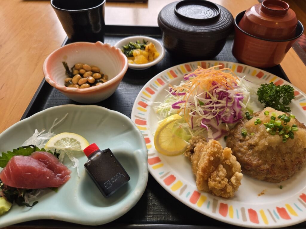 おはようございます。本日のひびきの店日替わり定食は、メイン…おろしハンバーグ、唐揚げ、刺身…マグロとなっております。さんぞくやでは、アプリ会員様限定でイベント開催中です!よろしくお願いします⭐今日も暑くてジメジメしてますが、元気にお待ちしております(’-’*)♪